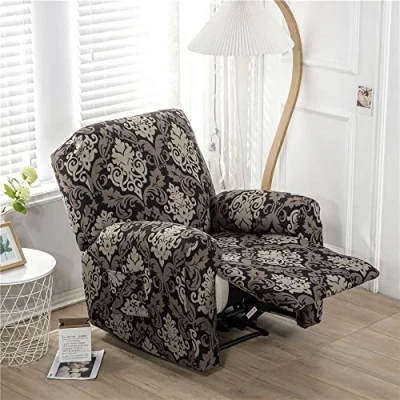 Highdi Recliner Chair Covers with Pockets for Electric Chair, 4 Pieces Luxury Floral Stretch Slipcovers Non Slip Sofa Cover Furniture Protector Living Room (Brown Damask)