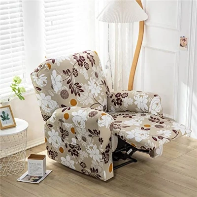 Highdi Recliner Chair Covers with Pockets for Electric Chair, 4 Pieces Luxury Floral Stretch Slipcovers Non Slip Sofa Cover Furniture Protector Living Room (Khaki Lotus)