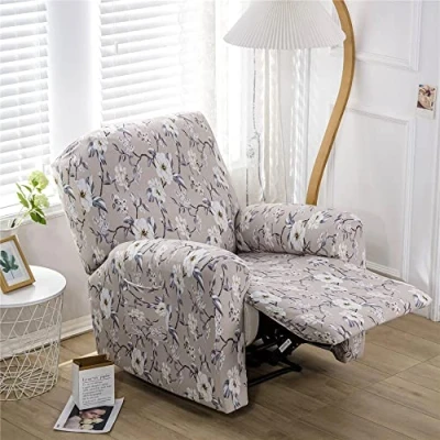 Highdi Recliner Chair Covers with Pockets for Electric Chair, 4 Pieces Luxury Floral Stretch Slipcovers Non Slip Sofa Cover Furniture Protector Living Room (White Floral)
