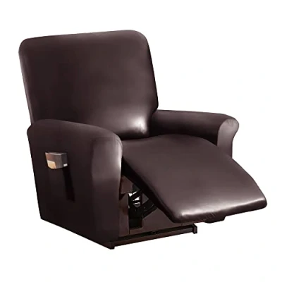 Aesthetic Decor: The recliner chair cover is made of PU leather fabric. Soft, flexible, stretchy, breathable and durable. It will give your recliner chair a brand new outlook and give your life a perfect touch experience. The classic solid colors can also be combined with various furniture styles, worth buying for your family. Featured Side Pocket Design: Our recliner chair has a unique designed pocket on the side. You can put your remote, glasses, magazines, and other small items on the side pocket for convenient use. With this unique pocket, the recliner chair cover can makes your recliner more comfortable for you. (High recommended for manual and electric recliners). Size: Suitable for the recliner chair with a backrest width of 27-39 in and a height of 30-41 in. The elastic bottom design makes the cover always stay in place without moving. (Tips: Please measure your chair in advance and compare it to our size). All-Round Protection: Our stretchy recliner slipcover can fully wrap your armchair, providing 360-degree comprehensive protection from stains, spills and abrasion. Perfect suitable for families with children or pets. Tuck the fabric into the gaps to make the fabric tighter and the elastic tie at the bottom will secure the slipcover stay in place firmly. High recommended for both leather and cloth sofa. Easy Install & Care: The 4-piece set (Front+Back+ 2 Sides)recliner covers are easy to install and take off. It also can withstand repeated machine washing and will not shrink or deform easily. Hand wash and machine wash are both available. Please note: Wash it separately in cold water. Do not bleach or Iron. Keep drying at low temperature.