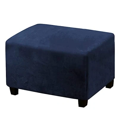 Highdi Rectangle Ottoman Cover Velvet Stretch Footstool Slipcover with Elastic Bottom, Footrest Stool Protector for Living Room Bedroom, Removable Washable Pouffe Covers (Navy Blue,Small)