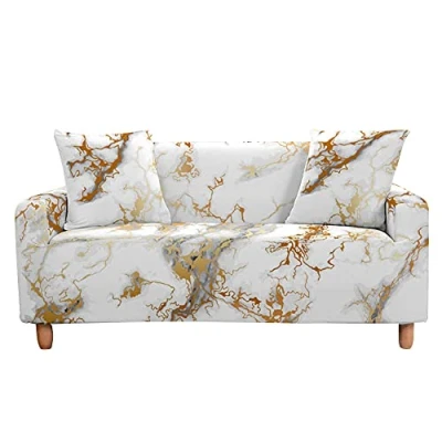 Highdi Slipcover Sofa Cover 1 2 3 4 Seat, Marble Printed Stretch Elastic Fabric Washable Armchair Couch Protector Decor for Leather Sofas Loveseat (White Gold,2 seater)