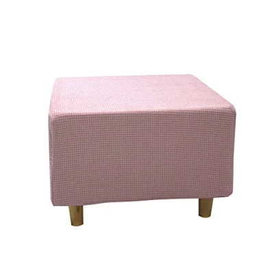 Highdi Square Ottoman Cover, Rectangle Stretch Footstool Slipcover, Stool Protector Cover with Elastic Bottom, Dustproof Removable Washable Footrest Pouffe Covers (jacquard pink,Large)