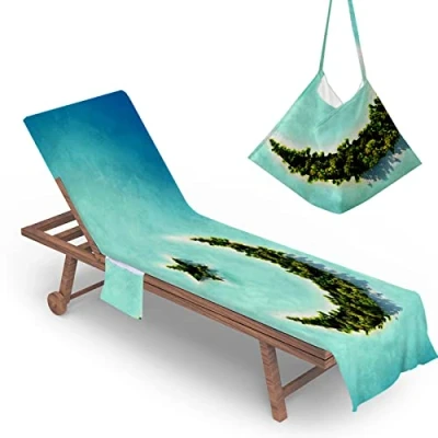 Highdi Sun Lounger Towels with Pockets, 3D Beach Sunbed Towels, Chair Cover Towel, Chaise Lounge Towel Cover, Mate for Garden Pool (75x210cm,Islands)
