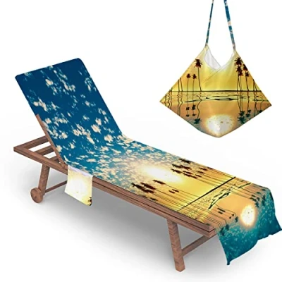 Highdi Sun Lounger Towels with Pockets, 3D Beach Sunbed Towels, Chair Cover Towel, Chaise Lounge Towel Cover, Mate for Garden Pool (75x210cm,Sunset)