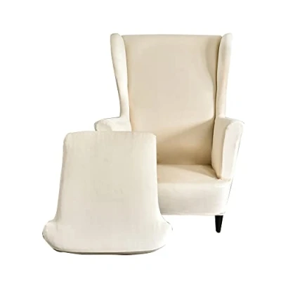 Highdi Velvet Wingback Chair Covers 2 Piece Stretch Wing Slipcover, Washable Spandex Solid Color Sofa Cover Furniture Protector for Armchair Chairs Living Room Bedroom (Cream color)