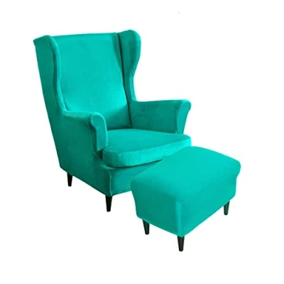 Highdi Velvet Wingback Chair Covers 2 Piece with Ottoman Cover, Stretch Wing Slipcover, Washable Spandex Fabric Sofa Cover Furniture Protector for Armchair Chairs Bedroom Hotel (turquoise)