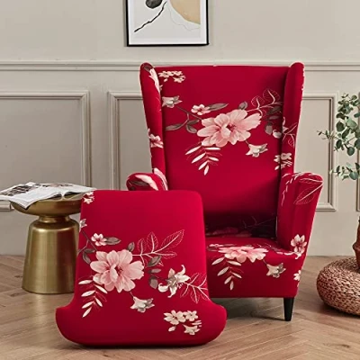 Highdi Wingback Chair Covers 2 Piece Stretch Wing Slipcover, Elegant Florals Sofa Cover Furniture Protector for Strandmon Armchair Chairs Living Room Bedroom Hotel (Red)