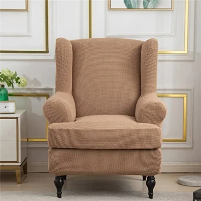 Highdi Wingback Chair Covers 2 Piece Stretch Wing Slipcover, Washable Solid Color Corn Velvet Sofa Cover Furniture Protector for Armchair Chairs Hotel Living Room Bedroom (Camel)