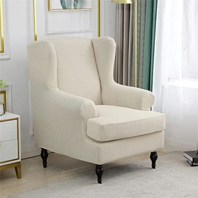 Highdi Wingback Chair Covers 2 Piece Stretch Wing Slipcover, Washable Spandex Fabric Jacquard Sofa Cover Furniture Protector for Armchair Chairs Living Room Bedroom Hotel (Beige)