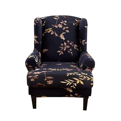 Highdi Wingback Chair Covers 2 Piece Stretch Wing Slipcover, Washable Spandex Fabric Sofa Cover Furniture Protector for Armchair Chairs Living Room Bedroom Hotel (butterfly bird)