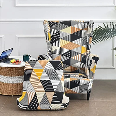 Highdi Wingback Chair Covers 2 Piece Stretch Wing Slipcover, Washable Spandex Fabric Sofa Cover Furniture Protector for Armchair Chairs Living Room Bedroom Hotel (Colorful geometry)