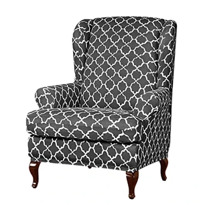 Highdi Wingback Chair Covers 2 Piece Stretch Wing Slipcover, Washable Spandex Fabric Sofa Cover Furniture Protector for Armchair Chairs Living Room Bedroom Hotel Solid color (grey)