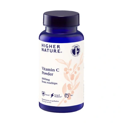 HIGH STRENGTH VITAMIN C POWDER: Our True Food Vitamin C supplement offers the highest potency natural source vitamin C from rosehips. Packed with the vitamin C content of 20 oranges in 1/2 a teaspoon. Nourish whole body health, enhance your energy and strengthen your immunity. This 66 gram, one month supply is ideal for those with vitamin C deficiencies or need a top up. Simply add to your drink of choice for highly absorbed, full spectrum benefits. NATURAL STRENGTH & SYNERGY: Vitamin C delivers numerous benefits; boosting cell protection & energy, promoting collagen production, protecting and nourishing glowing skin & hair, supporting inner vitality, helping mineral absorption, aids healthy teeth, bones, gum, blood vessels and joints - plus supports normal nervous system and psychological function. BOOST DAILY VITAMIN C INTAKE & HEALTHY IMMUNE SYSTEM: Studies show nearly 1 in 4 adults are not getting enough vitamin C. Our natural vitamin C powder is sourced from rosehip fruit that is rich in vitamin C and beneficial longevity nutrients for superior results. With no synthetics or additives - just 100% natural ingredients. TRUE FOOD DIFFERENCE: Higher Nature's True Food formulations are made from only real food, using green extraction techniques providing honest nutrients, exactly as they are grown in nature. 100% natural actives, zero synthetics. THIRD-PARTY TESTED: For guaranteed quality and purity, this product has been third-party tested so you can be confident it meets our highest standard. NUTRITIONIST FORMULATED:Pioneering therapeutic, nature-led formulas for over 30 years, Higher Nature is a renowned British supplement brand you can trust in. Every expertly crafted, science-driven formula delivers nutrients certified to the highest quality standards for superior benefits. Each bottle contains 66 grams of Vitamin C Powder | One Month Supply | 30 Servings | Vegetarian & Vegan Please note box may not be supplied