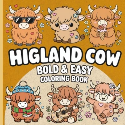 Highland Cow Bold and Easy Coloring Book: & Pages for Kids Adults 50 Simple, Large Designs Relaxation, Stress Relief Gifts