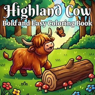 Highland Cow Coloring Book: +50 Bold and Easy Designs Featuring Beautiful Scottish Cows with Landscape Scenes for Adults, Kids, Lovers Relaxation Stress Relief