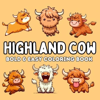 Highland Cow Coloring Book: Bold & Easy Designs with Thick Lines for Kids, 30 Simple Scottish Cows Illustrations Boys and Girls