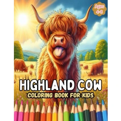 Highland Cow Coloring Book for Kids Ages 4 8: Easy and Cute Scottish Pages Children, Boys Girls