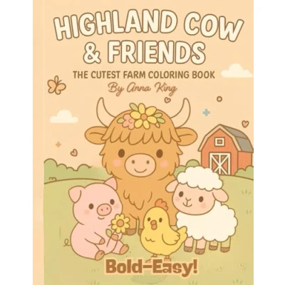 Highland Cow & Friends: The Cutest Farm Coloring Book: Bold and Easy