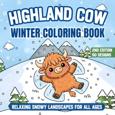 Highland Cow Winter COLORING BOOK: Relaxing Snowy Landscapes for All Ages