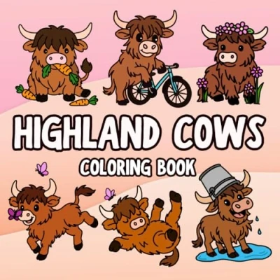 Highland Cows Coloring Book: 50 Bold and Easy Pages for Kids Adults, Perfect Relaxation Stress Relief (Bold Books)
