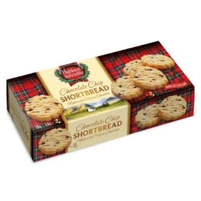 Experience the sweet and savoury perfection of Highland Speciality Chocolate Chip Shortbread! This135g pack combines crumbly shortbread and chocolate chips to create a truly tantalizing treat that you won't be able to get enough of. Enjoy the delight of this irresistible blend today!. 1 x Highland Speciality Chocolate Chip Shortbread 135g. Made with Belgian Chocolate. Baked in Scotland