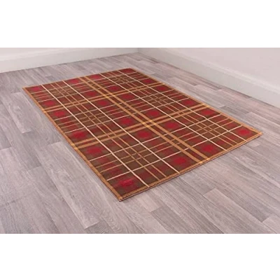 AmazonMaterial : Polypropylene Pattern : Checked, Tartan Turn on the charismatic appeal of your home with our Tartan Brown, Blue, Red and Grey Chequered Rugs. This stunning rug features a captivating checkered pattern in a classy brown, grey, blue and red colour palette that lets your create your own colour story. Place it in your living room under the coffee table or use it as a bedside rug, it’s sure to accentuate your interior décor. Fabricated from 100% Polypropylene, this rug exudes high durability, resilience, comfort and easy maintenance. Pile height : 15mm, Manufacturer: Lord of Rugs