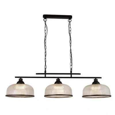 Highworth 3 Light Bar Pendant Black, Holophane Style Glass