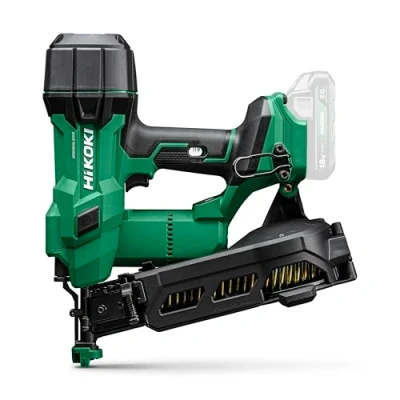 Powerful 18 V battery roofing felt nailer: with air spring drive system for gentle, pneumatic feel and high driving speed of up to 2.7 nails per second Wide Applications Ideal for roofing, vinyl siding, window installations and drywall. Nail length from 25 to 45 mm for different projects Brushless Motor for Longer Lifespan: Maintenance-free brushless motor ensures higher efficiency and reliability. Dust and wear resistant mechanism for precise results ERGONOMIC DESIGN & EASY TO USE Lightweight, well balanced device with tool-free depth adjustment and switchable modes for single and contact triggering Box contents: 1 x cordless roofing felt nailer (NV1845DAW6Z) / without battery / without charger / includes 1 safety glasses, 1 hex wrench and 1 practical transport case, Weight: 8.598028218 pounds, Manufacturer: HiKOKI