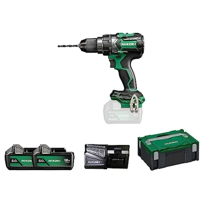 Powerful cordless drill: 18 V and 140 Nm of torque for demanding drilling and screwing work, ideal for professionals and DIYers Brushless Motor: Longer life and increased efficiency, less maintenance and reduced power consumption for maximum performance RFC Technology: Reactive force control stops the engine in case of sudden overload, prevents injury and protects the tool Ergonomic design: compact housing and soft-touch handle for comfortable work even in tight and hard-to-reach spaces Box contents: includes 2 x 5.0Ah batteries, quick charger, 13 mm quick-release chuck and practical carrying case, Weight: 4.40924524 pounds, Manufacturer: HiKOKI
