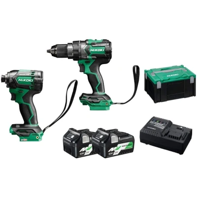 General description The HiKOKI KC18DCJAZ 18V MULTIVOLT Twin Pack includes two high-performance tools: the DV18DC 18V Cordless Combi Drill and the WH18DC 18V Cordless Impact Driver. This kit is designed for both efficiency and versatility, making it ideal for a wide range of DIY and professional applications. Technical specifications DV18DC Combi Drill: Battery Voltage: 18V Drill Chuck: 1.5 - 13mm Keyless Max Torque: Hard: 140Nm, Soft: 70Nm No Load Speed: High 0 - 2,000/min, Low 0 - 500/min Impact Rate: 0 - 30,000/min Overall Head Length: 190mm Capacity: Brick 20mm, Mild Steel 16mm, Soft Wood 102mm, Wood Screw (D x L) 12 x 100mm, Machine Screw 6mm WH18DC Impact Driver: Ordinary Bolt Capacity: M5 - M18 High-Tension Bolt Capacity: M5 - M14 Small Screw Capacity: 4-10 Self-Drilling Screw Capacity: 3.5 mm - 6 mm Torque: 210 Nm Weight: 1.6kg Length: 114mm Compatibility and accessories Includes: 1x DV18DC 18V Combi Drill 1x WH18DC 18V Impact Driver 2x BSL36A18 2.5Ah/5.0Ah MULTIVOLT Batteries