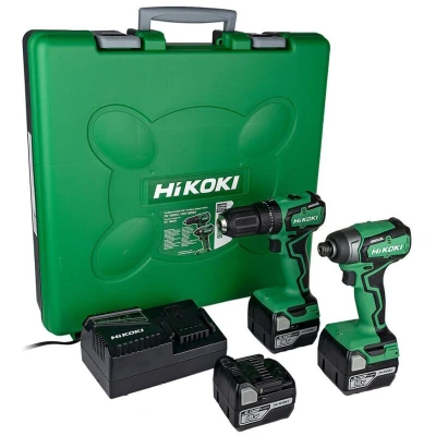 General description The HiKOKI KC18DDXJBZ Twin Pack includes a powerful 18V Combi Drill and Impact Driver, both equipped with high power brushless motors for enhanced durability and performance. The Combi Drill features a two-speed gearbox, 20-stage adjustable torque, and modes for rotary and impact drilling, while the Impact Driver is designed for reliable usage. Technical specifications Combi Drill Model: DV18DDX Chuck Capacity: 2.0 - 13mm No Load Speed: 0-440/0-1,700/min Impact Rate: 0-6,600/0-25,500/bpm Max Torque: 55Nm Drilling Capacity: Brick 13mm, Wood 36mm, Steel 13mm Impact Driver Model: WH18DDX No Load Speed: 0-3,200/min Impact Rate: 0-4,000/bpm Torque: 140Nm Driving Capacity: Bolt M5-M14, HT bolt M5-M12, Screw 4-8mm Battery: 3 x 18V 5.0Ah Li-ion Other information Includes: 1 x Charger and 1 x Carry Case Electric brake for increased safety Soft grip handle for increased comfort