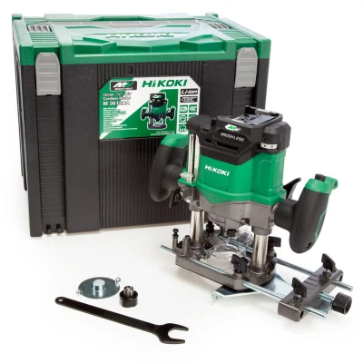 General description The HIKOKI M3612DAJ2Z 36V 1/2" Router is the world's first cordless router featuring a lightweight design and an efficient brushless motor that delivers high cutting performance. With variable speed control and an easy access ON/OFF switch, this router is designed for convenience and precision. Technical specifications Collet Size: 12.7mm (1/2") No-load Speed: 11000-25000/min Run Time Per Charge: 35 mins on 12mm plywood (BSL36A18), 50 mins on 9mm plywood (BSL36A18) Dimensions: 275 x 148 x 280 mm (including battery) Weight: 3.8kg (including battery & dust adapter) Compatibility and accessories Includes: 1x 36V Brushless Router M3612DA 1x 1/2" collet chuck 1x 1/4" collet chuck 1x Straight guide 1x Template guide 1x Dust adapter 1x Wrench Other information Brake function Constant speed control Spindle lock LED work light Can be connected to a dust extractor (adapter sold separately) Warranty: 3 years with online registration for an additional 2 years Online