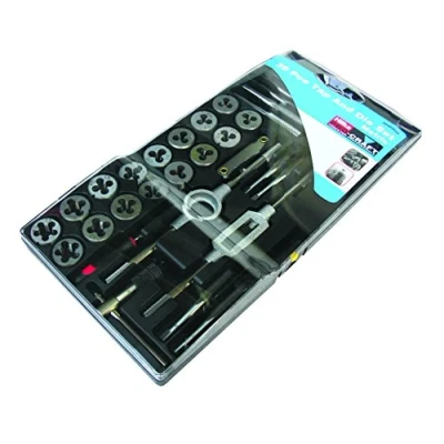 High quality alloy steel set containing popular metric tap, dies and holders. Suitable for cleaning and cutting new threads. In display & storage hanging case. Contains: tap wrench, die stocks, ratchet tap, thread gauge, screwdriver, 17 taps and 17 dies. Sizes 3 x 0.5, 3 x 0.6, 4 x 0.7, 4 x 0.75, 5 x 0.8, 5 x 0.9, 6 x 0.75, 6 x 1.0, 7 x 0.75, 7 x 1.0, 8 x 1.0, 8 x 1.25, 10 x 1.25, 10 x 1.5, 12 x 1.5, 12 x 1.75mm, 1/8NPT., Weight: 2.9321480846 Pounds, Manufacturer: Hilka Tools (UK) Ltd