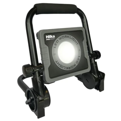Durable and weather IP54 resistant for indoor/outdoor use. 15W, 1,650 Lumens bright LED output with wide beam illuminates large work areas with ease. Adjustable folding stand for easy positioning and storage. Cordless & rechargeable via USB C for portable use Three brightness settings to extend battery life. Specifications: Input DC 5V. Output 15W. USB output DC 5V, 1A. Protection class III. Lithium battery 3.7V/5000mAh. Size 214x184x213mm. Run Time: 2.5-3h (100%), 5-6h (50%), 10-12h (25%)., Manufacturer: Hilka Tools