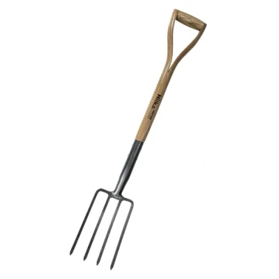 Heritage border fork with an ergonomic one-piece hardwood Y-shaped handle and shaft. Forward tilt handle giving the ideal digging angle. Heat treated carbon steel head for increased strength and longevity. Powder coating provides greater protection against rust and scratches., Manufacturer: Hilka Tools