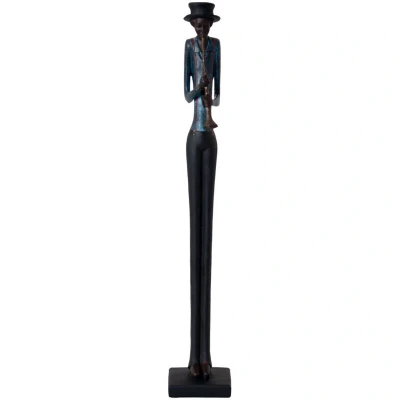 General description The Standing Jazz Band Trumpeter is a striking figurine that captures the essence of a talented jazz musician in a stunning, three-dimensional form. The figure's fluid, expressive stance and intricate details depict the trumpeter mid-performance, evoking the infectious rhythm and soulful melodies that define the jazz experience. This captivating ornament serves as a versatile décor piece, seamlessly integrating into a wide range of settings, from contemporary living rooms to vintage-inspired commercial premises, adding a touch of sophistication and artistic flair. Technical specifications Length: 10 cm Height: 60 cm Width: 10 cm Weight: 1.11 kg CBM: 0.0900 Colour: Blue, Brown Material: Resin Other information Handcrafted Part of the 'Standing Jazz Band' collection Perfect for gifting