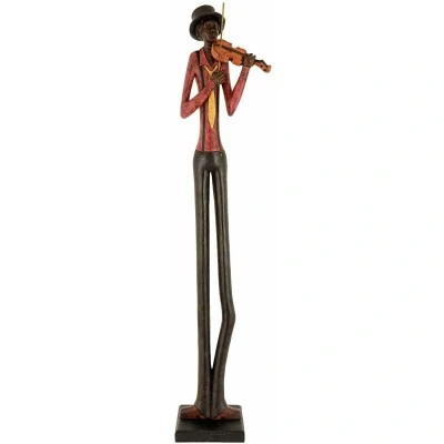 General description A standing jazz man, playing the violin, this ornament is part of the 'Standing Jazz Band' collection. It features a tall, slim figure holding a musical instrument, with bright colors that reflect African tradition. Technical specifications Length: 10 cm Height: 60 cm Width: 10 cm Weight: 1.09 kg CBM: 0.1000 Colour: Brown, red Material: Resin Other information Perfect for gifting Handcrafted More options available in this range