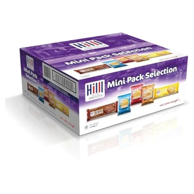 Hill Mini Pack Biscuits, 100s Crispy Assorted Biscuits Convenient Single Serve Packs Perfect for Snacks, Lunchboxes, and On the Go Variety of Individually Wrapped Three