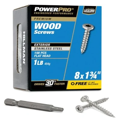 ENGINEERED FOR THE OUTDOORS: Ideal for decking and any outdoor wood project BEST-IN-CLASS CORROSION PROTECTION: High marine grade 305 Stainless Steel Coating offers superior rust and corrosion protection INSTALLS QUICKLY: 20 percent faster engagement with material compared to standard wood screws NO SPLITTING: 75 percent less wood splitting than standard wood screws 1lb Box contains approximately 172 pieces; this assortment is sold by weight and actual piece count may vary., Weight: 0.9999999991614094 Pounds, Manufacturer: The Hillman Group