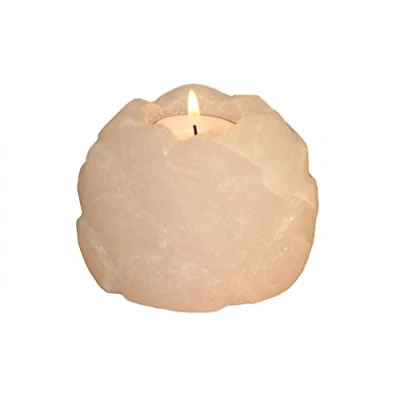 Himalayan Crystal Salt Dreams Lotus Blossom Tea Light Holder, White Line, Salt, White, 8 x cm