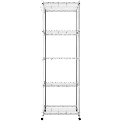 Sturdy & Durable - Made of durable steel construction with silver-coated chrome finish, make the shelf effectively water-proof, anti-rust and durable. Good Weight Capacity - 59 x 35 x 183 cm/ 23.2 x 13.8 x 72 inch (L x W x H), total static max load weight is 600lbs. So you don't have to worry it's weight capacity even you put some heavy stuff. Multifunctional - The standing rack with wheels is easily moving, suitable for various indoor and outdoor places, perfect for use in kitchen, living room, bedroom, bathroom, laundry, office, etc Easy to Brake and Easy to Move - With 4 wheels (two with brake,two are without brake), it's so convenient for you to move rack to anywhere you want and keep rack stable. Easy to Assemble - Simple structure, no Tools required and super easily to install. The height of each shelf is adjustable depending on your needs.