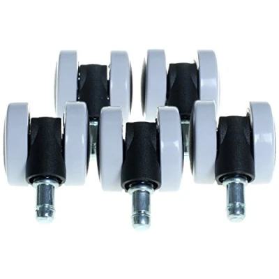 PU Castor Wheels for Office Chair Timber Floor. Fits most Standard Chair bases, such as parquet, marble, stone, chair mats, etc. 11mm Diameter Stem, 22mm In Length. 50mm Diameter Wheels External Safety Brake: can be set to prevent the wheels from rolling freely. Easy Push Fit 11mm Stem - pushed and clicked into place. 360° Swivel Function. Set of 5 castors, Weight: 1.10231131 Pounds, Manufacturer: KAXIN