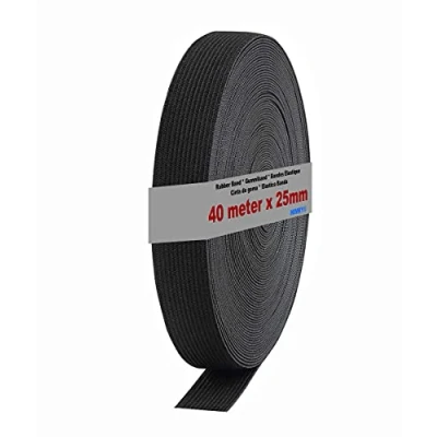 HIMRY flat rubber cord elastic band with 40 metres length and 2.5 cm width. Ideal for edge waistband - shorts, skirt, underwear, leisure and tracksuits etc. Very suitable for maternity wear and children's clothing, pyjamas, or custom clothing. Also very suitable for household DIY crafts knitting and many different other jobs. The flat elastic band with good elasticity is durable, strong and soft, comfortable and soft to wear. Easy to work with, can be sewn directly onto fabrics. Machine washable (40° recommended).