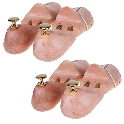 2 pairs: HIMRY shoe stretcher is made of untreated natural wood (Schima superba) to absorb the moisture of shoes, keep the shape, and thus extend the durability of the shoes. At the same time, natural wood shoe last exudes an aromatic and pleasant fragrance, ensures very good drying and air circulation. The handle button on the heel part ensures easy insertion and removal. The split and adjustable front panel (suspension) ensures the perfect fit and ventilation. Uni-Sex shoe stretcher, suitable for men and women. All year round item; available in different sizes and combinations.