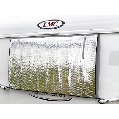 Made of thermal film, light weight and durable. For sun reflection, cold and heat protection. The thermal mat is edged all around with a dark blue polyester band, rounded corners The standard textile piping allows easy insertion into the piping rail Two mounting options: press studs and eyelets Design: 160 x 74 cm, colour: silver