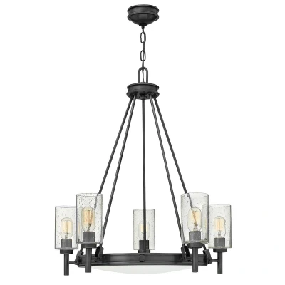 Hinkley Collier Cylindrical Pendant Ceiling Light Contemporary Black Oxide 5x E27