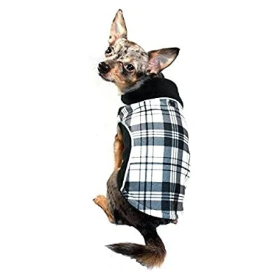 Hip Doggie HD 5PDSW Plaid Puffer Vest Dog Coat, M, White