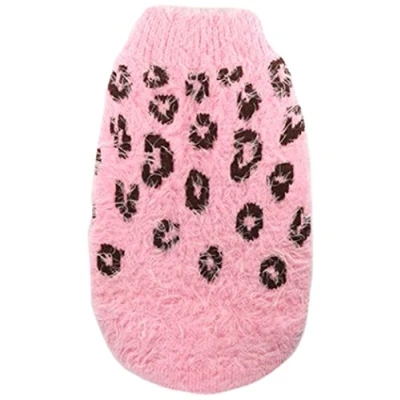 Hip Doggie HD 7FSCP M Feather Soft Cheetah Sweater JUMPER, M, Pink