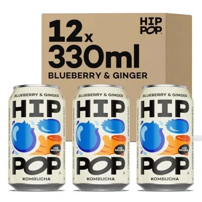 Hip Pop Kombucha, Blueberry & Ginger, Low Calorie, 100% Natural, Vegan, 12 x 330 ml